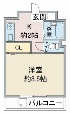 | 間取り | 1K(洋8.5、K2) | 主要採光面 | 南 |